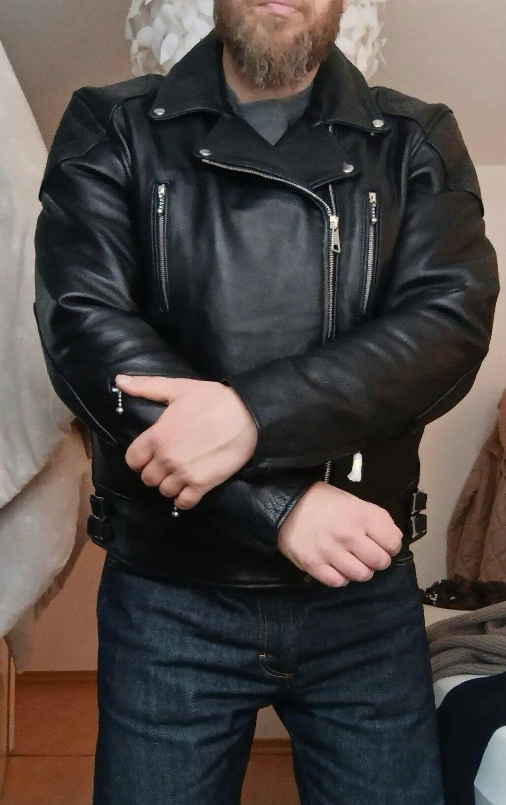 My 619 arrived yesterday. After buying gloves, a bag and a 1958 jacket, I was pretty sure that the 619 would look awesome too. Of course, I wasn't disappointed. 5% YMCA vibes and 95% old-school biker look. You can feel the quality as soon as you put the jacket on. I'm glad I treated myself to this piece. I had to wait a while for my size 52, but it was worth it. I've been eyeing this jacket for about two years and now it's mine.🙏🍀😁